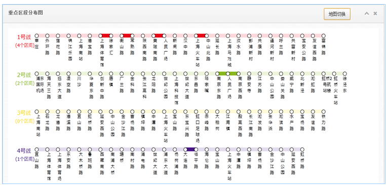 每条线路若出现重点区段则高亮显示、根据需要选择网状和线型两种模式查看、单击重点区段,查看重点区段成因及相关信息。