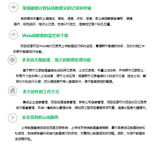 为钻探工程工作者量身打造的钻探系统,业内首推手持端无纸化标准作业流程,打通项目经理与劳务班组垂直管理通道。项目管理去中间化,土层参数模板化,一机在手、操控无忧。实时记录,端口开放,与顺凯土工试验数据自动化采集系统、土工试验数据处理系统无缝联接。