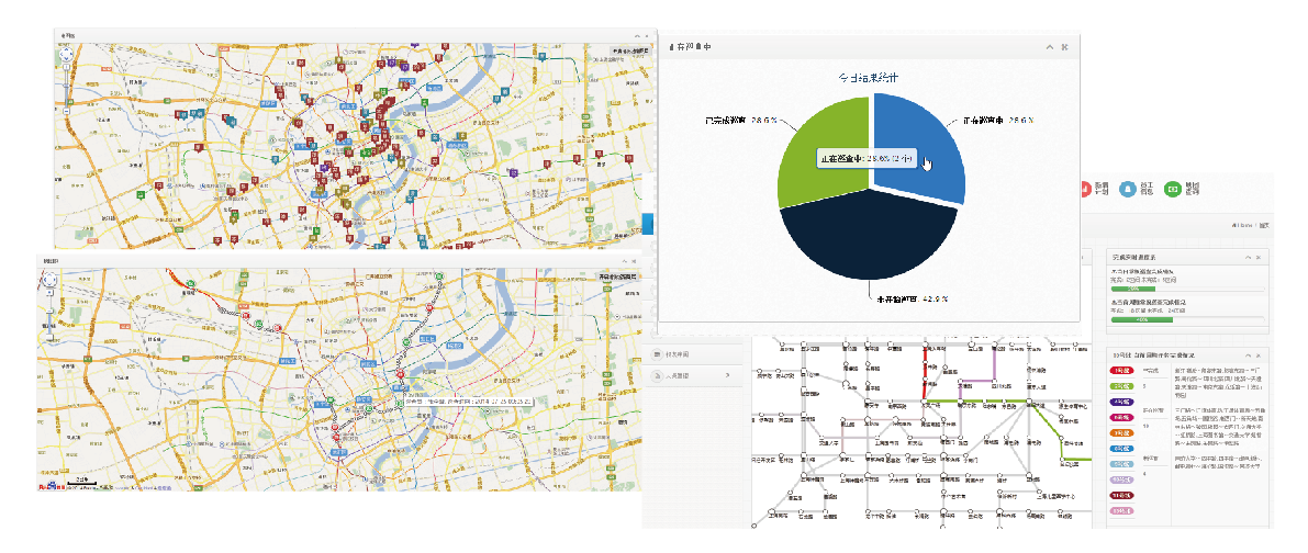 实时查询:精良的地图查看平台,用户可以根据需要以不同条件同时在地图上查看:任务分布、巡视员轨迹以及项目分布情况;