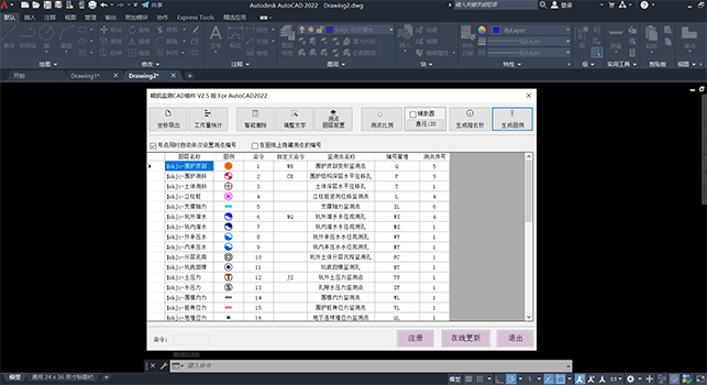 顺凯监测CAD插件实现在CAD图上快速智能标准化布设监测点、一键快捷导出测点坐标和工作量等功能,使用方法快捷,可有效减少用户大量重复性操作,帮助提高监测制图和统计效率,另外本插件的推广应用也有助于地区基坑监测制